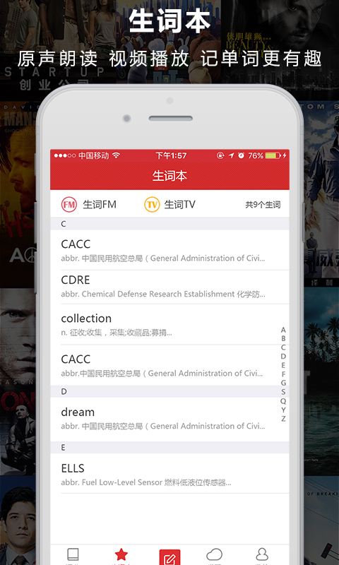 第3個(gè)是人人詞點(diǎn)。這是一個(gè)專門用來學(xué)習(xí)英語(yǔ)單詞的小程序,它覆蓋了四六級(jí)高考考研等單詞范圍,這里的每一個(gè)單詞都會(huì)對(duì)應(yīng)一段美劇片段,讓你可以邊學(xué)邊看,更容易理解這個(gè)單詞的意思,甚至還能創(chuàng)建自己的生詞本方便背誦復(fù)習(xí)。